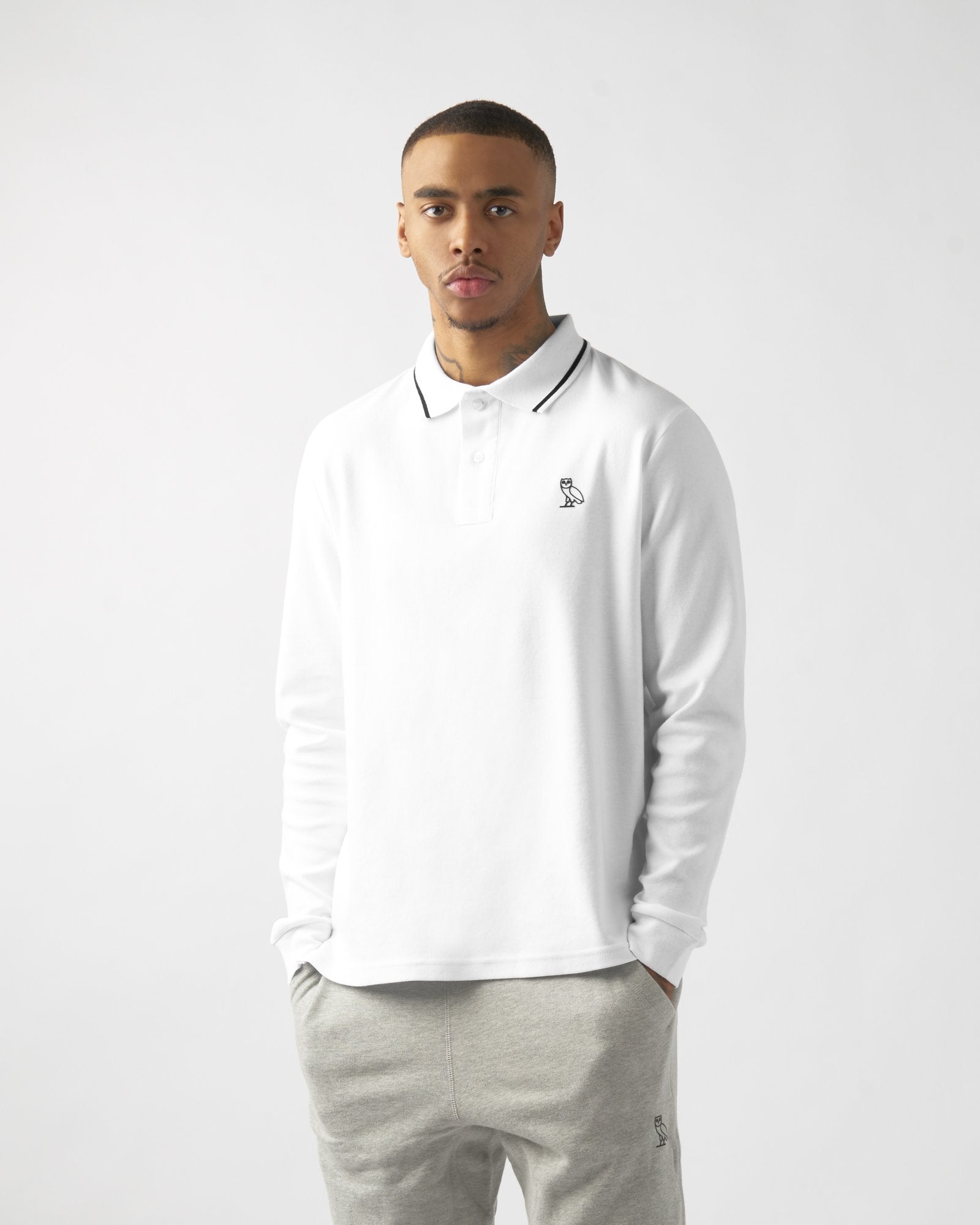 INTERLOCK LONGSLEEVE POLO - WHITE